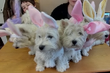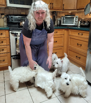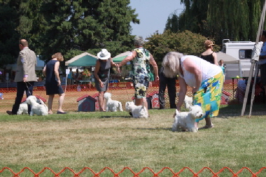 Our Westies come from English, Spanish, French and Canadian lines and are bred for health, temperment and conformation. We breed for the joy of showing our dogs and to that end we don't have a lot of pups throughout the year; we keep a list of interested parties and contact them when a pup becomes available.